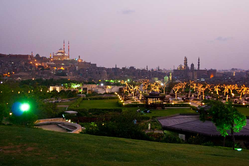 Al-Azhar Park is listed as one of the world's sixty great public spaces by the Project for Public Spaces. The designers insisted on integrating traditional Islamic landscape traditions in both their design and choice of greenery, thus allowing the past flow of the city to come back to life. Persian and Timurid elements are also reflected in the water channels and fountains. The Nile, symbol of Egypt and Cairo, also finds a place in the new project as the river is designed to feed the water ponds in the park. The choice of plantation was also carefully made, according to landscape and quality of soil. Among the fantastic atmosphere, enjoy a delicious dinner at one of the oriental restaurants in the park so as to get your ultimate enjoyment.